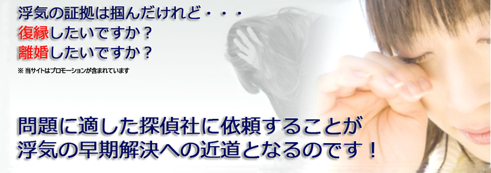 当サイトは調査目的に合うよう以下のジャンル分けで掲載をしています。 ・価格の手ごろな探偵社 ・弁護士運営で1ストップで離婚まで任せられる探偵社 ・知名度や実績、実力も高い探偵社 ・復縁したい時に頼む探偵社 ・決めかねている時に利用したい診断系探偵サイト 浮気解決は時間との勝負です。そして、証拠の内容や報告書の良し悪しによって裁判の行方や慰謝料の額に影響を与えるのです。一刻も早く貴方に合ったジャンルの探偵社へ相談をしてみてください。